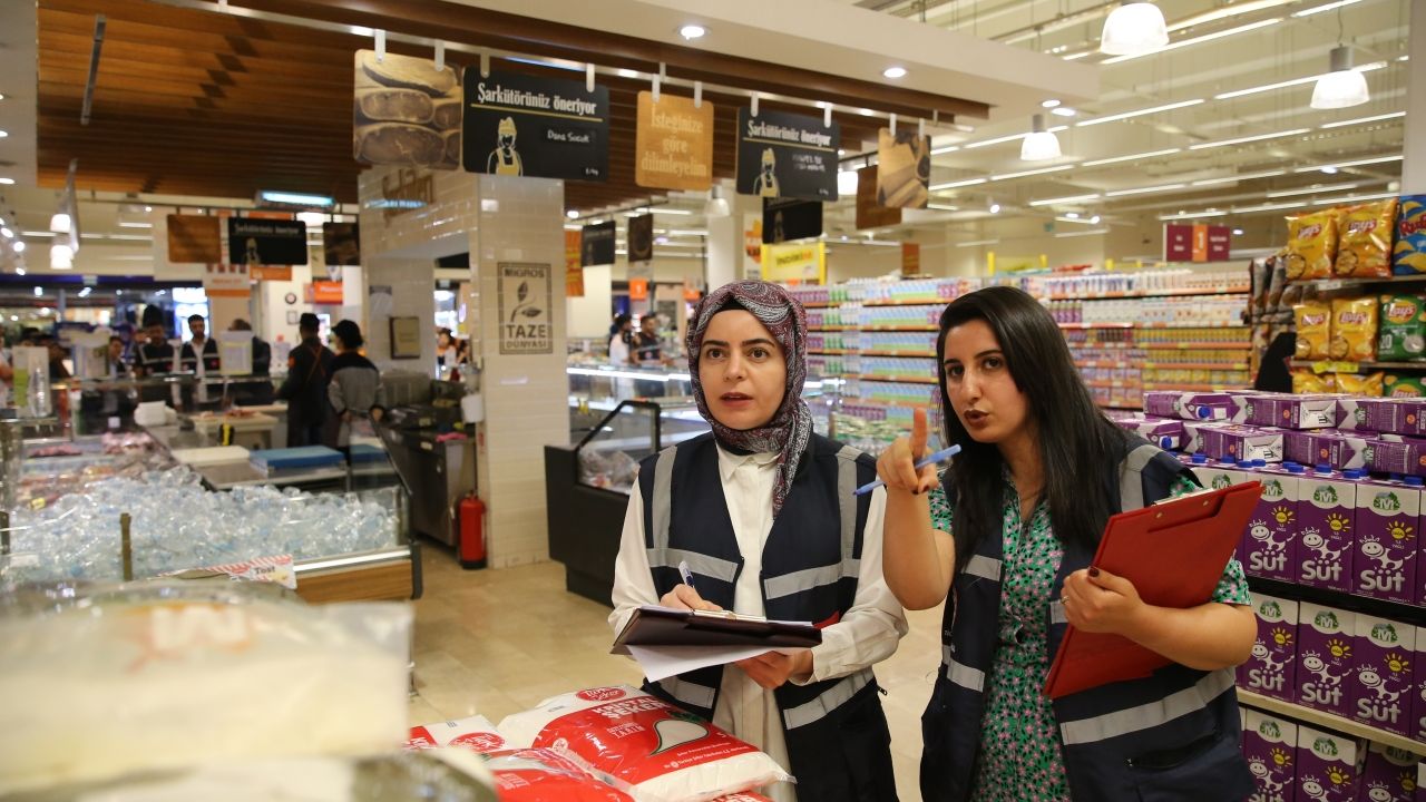 Bu ürünlerin etiketlerini inceleyen ekipler, ürünün birim ve stok fiyatını, fiyatın uygulanmaya başladığı tarihi ve menşeni kontrol etti.