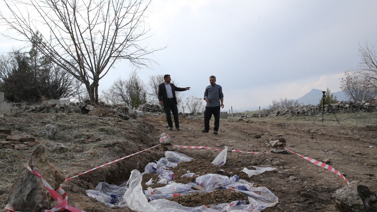 Kırsal Özbilek Mahallesi'nde önceki gün hayatını kaybeden bir kişinin defnedilmesi için iş makinesiyle mezar alanında çalışma yapıldı.