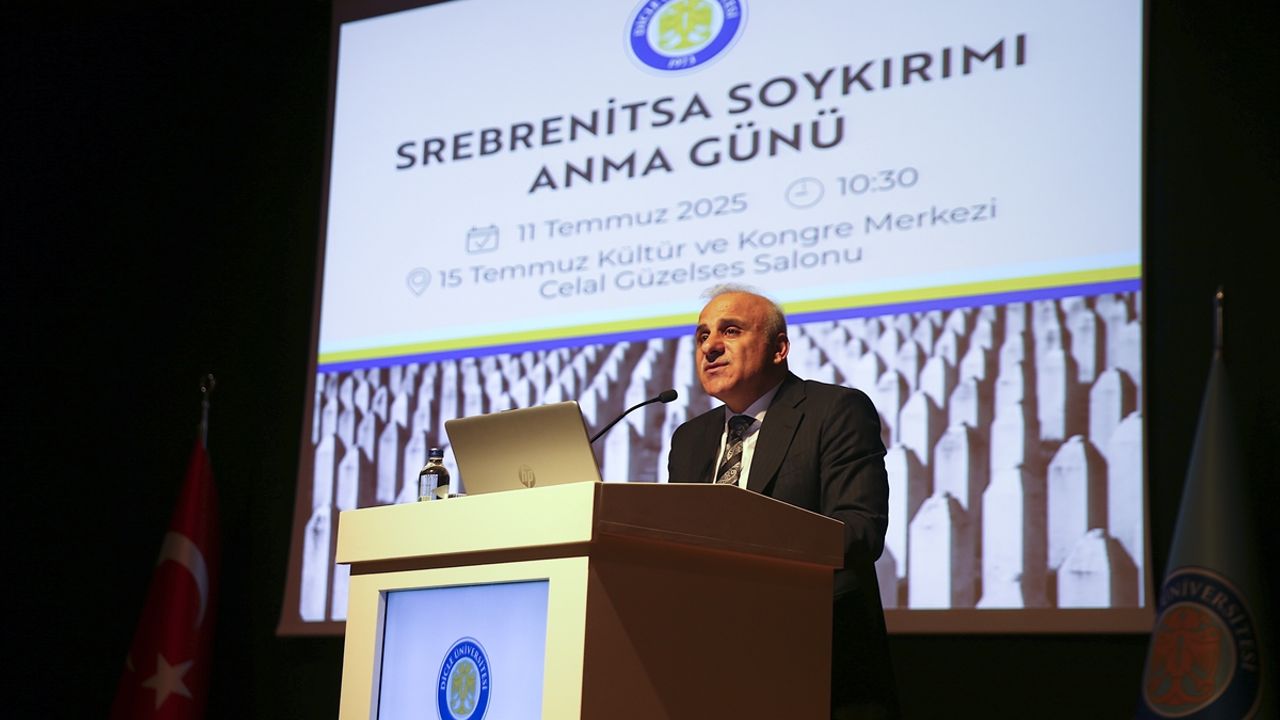 DÜ Rektörü Kamuran Eronat da Srebrenitsa Soykırımı'nın insanlık tarihine kara bir leke olarak geçtiğini belirtti.