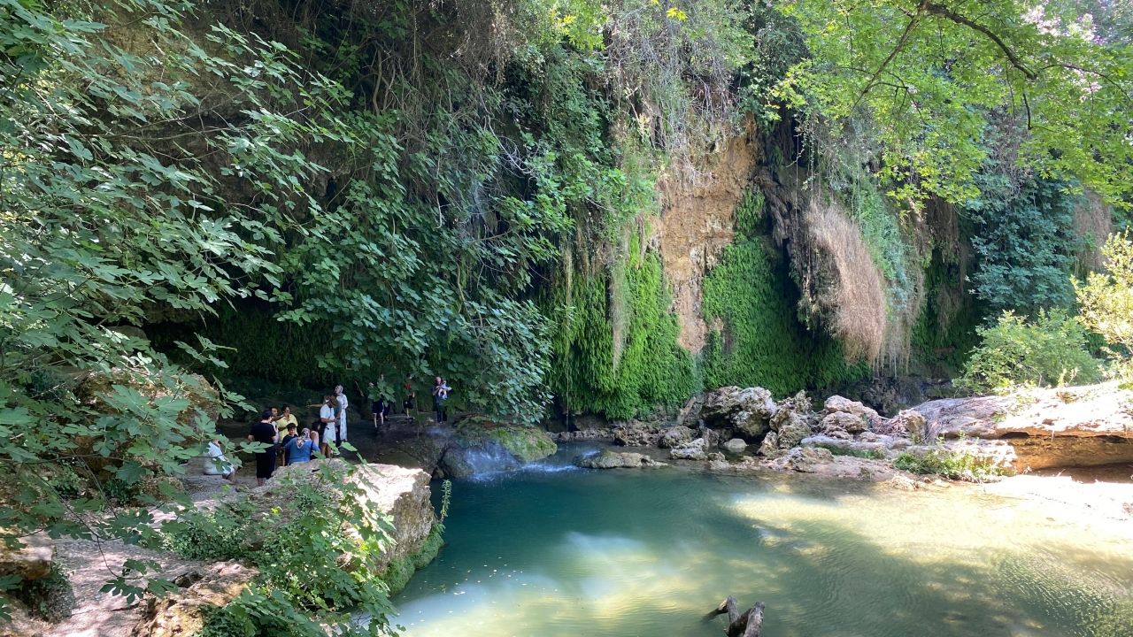 Kentte 42 dereceyi bulan sıcaktan bunalanlar ile tatil için gelen yerli ve yabancı turistler, şelaleyi ziyaret ederek asırlık ağaçların gölgesinde ve buz gibi suyunda serinleyebiliyor.