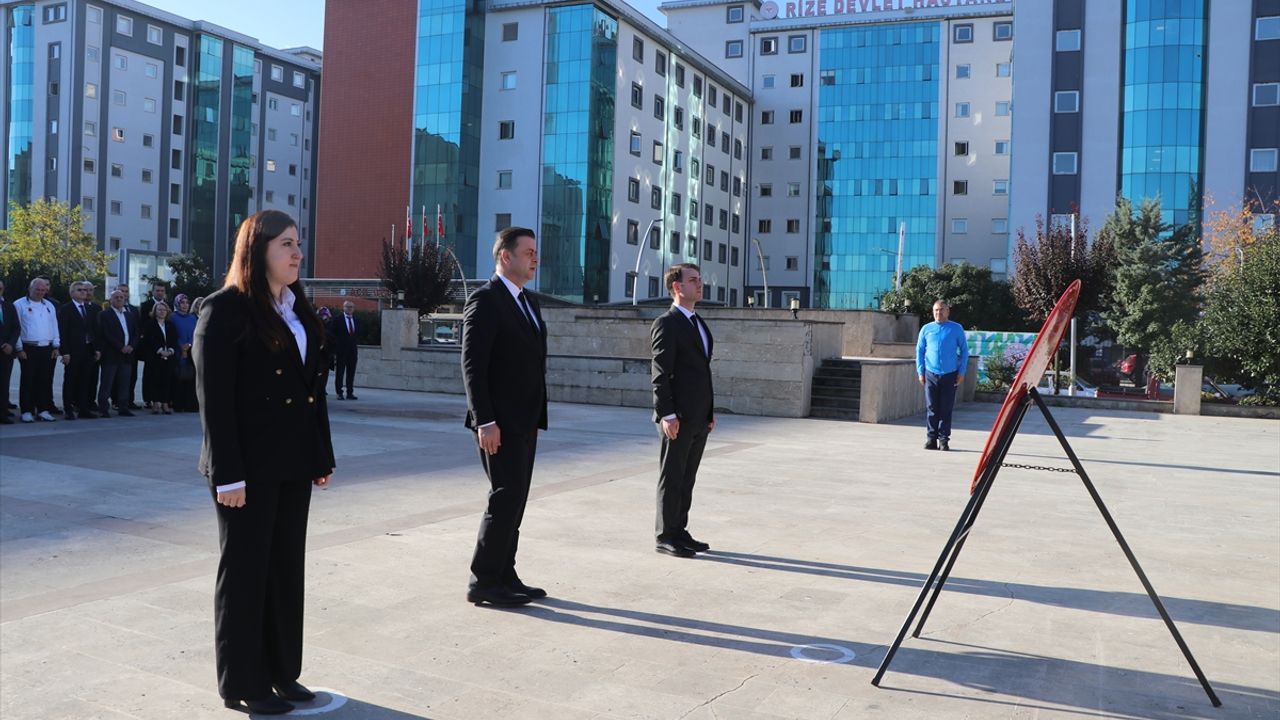 Rize Valiliğinin tören alanında düzenlenen programda İl Milli Eğitim Müdürü Halil İbrahim Akmeşe, Atatürk Anıtı'na çelenk sundu.