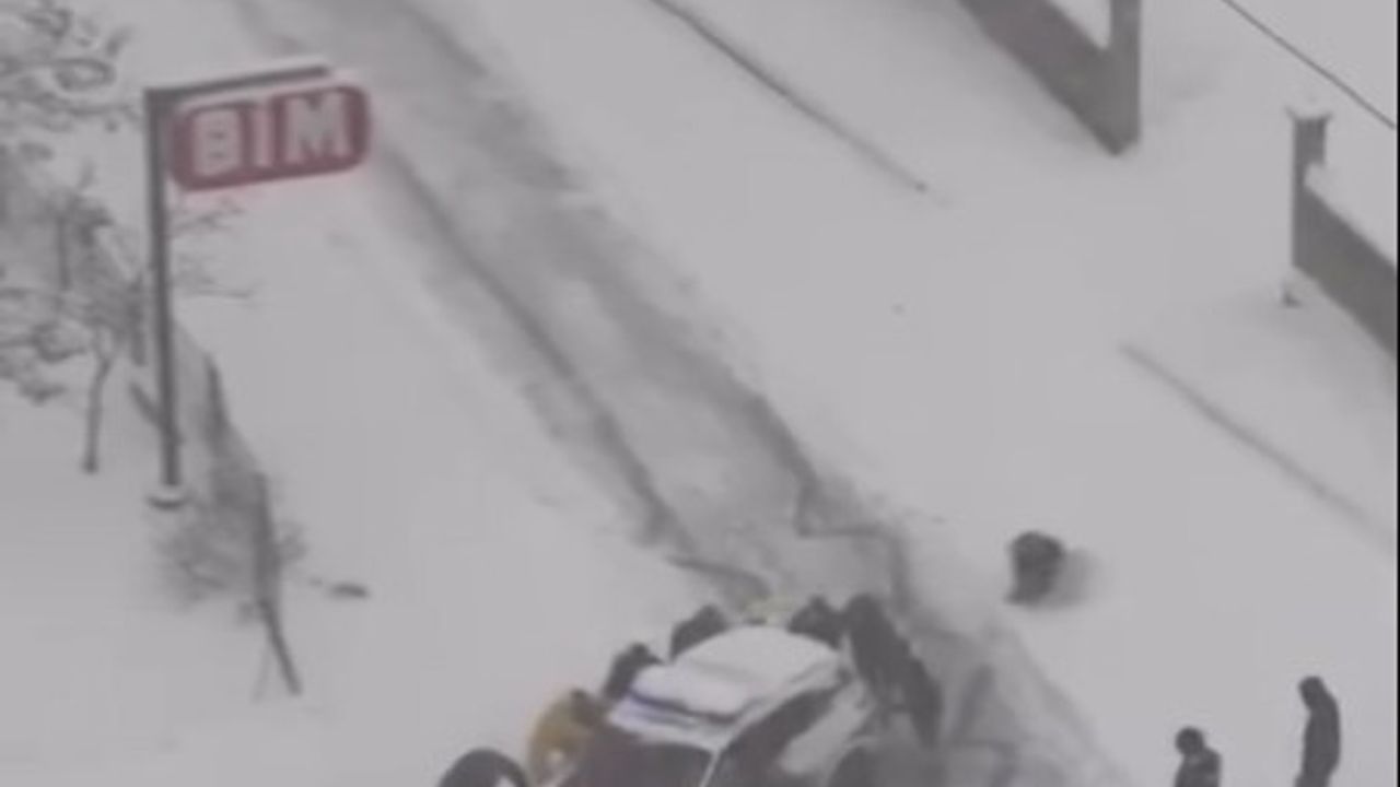 Mardin'de etkili olan kar yağışı ulaşımı olumsuz etkiledi. Artuklu ilçesinde birçok araç kar nedeniyle yollarda mahsur kaldı. Polis ekipleri yolda kalan araçları iterek güvenli bölgeye aldı. Yolda kalan bir polis aracını da çevredekiler iterek ekiplere yardımcı oldu. O anlar, cep telefonu kamerasına yansıdı.