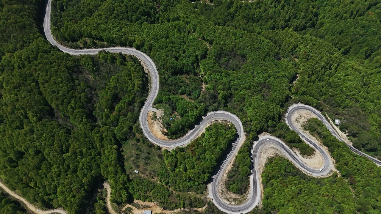 KÜTAHYA (AA) - Kütahya ile Bursa'nın doğal sınırını oluşturan Domaniç Dağları'nda ilkbaharla birlikte yeşilin tonlarıyla bütünleşen kıvrımlı yollar dronla görüntülendi.