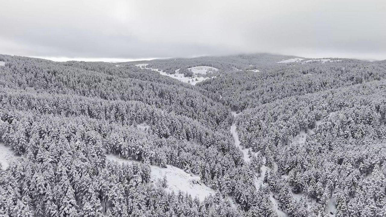 Erzincan kent merkezine 70 kilometre uzaklıktaki Refahiye ilçesine bağlı Dumanlı Tabiat Parkı kış aylarında kar yağışı sonrası eşsiz bir güzelliğe kavuştu. Deniz seviyesinden yüksekliği 2 bin metre olan ve yeşilin birçok tonunu barındıran tabiat parkı yaz aylarında yerli ve yabancı birçok turistin akınına uğrarken, kışın da kar yağışı nedeniyle beyaz ve yeşil bürünerek doyumsuz bir görüntü ortaya çıktı. Kar kalınlığının 1 metreyi aştığı tabiat parkı dron kamerası ile görüntülendi. Etrafı çam ormanlarla çevrili Dumanlı Tabiat Parkı, yaz aylarında olduğu gibi kışın da doğal güzelliğini koruyor. (DHA)