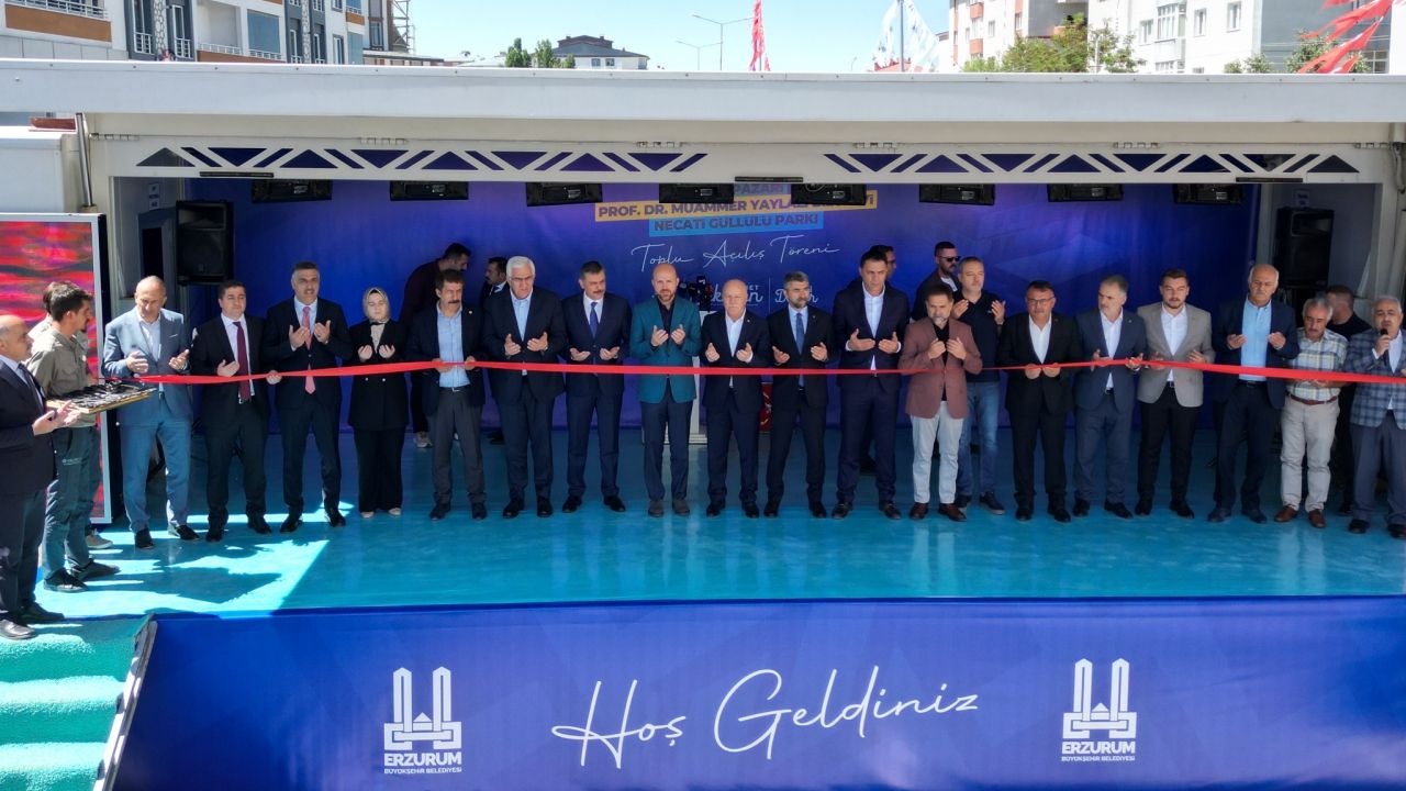 Bilal Erdoğan, Erzurum Büyükşehir Belediyesince hayata geçirilen halk pazarlarının 6. şubesi, geçen günlerde hayatını kaybeden Erzurum Teknik Üniversitesi eski Rektörü Prof. Dr. Muammer Yaylalı'nın isminin verildiği bilgi evi ile Eski Erzurum Milletvekili Necati Güllülü'nün adını taşıyan parkın açılışını gerçekleştirdi.