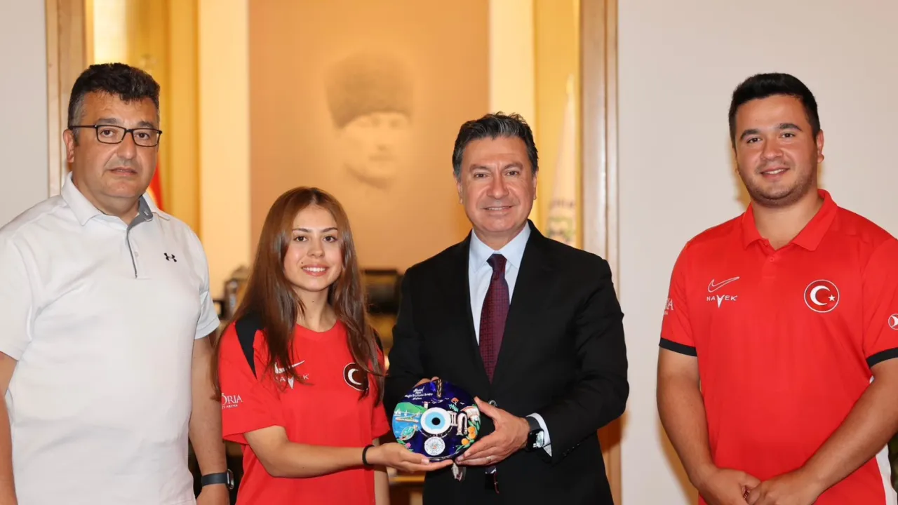 Muğla Büyükşehir Belediyesi Spor Kulübü’nün milli okçuları Hazal Burun ve Emircan Haney ile antrenörleri Dr. Ejder Sözen, elde ettikleri ulusal ve uluslararası başarıların ardından Büyükşehir Belediye Başkanı Ahmet Aras’ı makamında ziyaret etti.