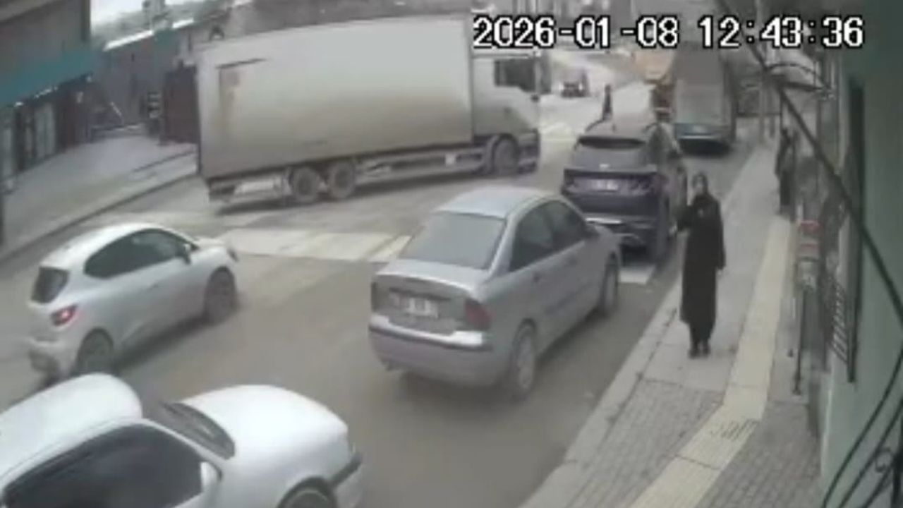 Kaza güvenlik kamerasına yansırken, kamyon şoförü gözaltına alındı. (DHA)