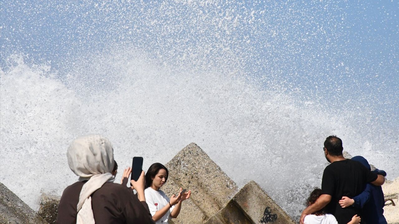 Kuvvetli rüzgar nedeniyle denizde dalga boyu yaklaşık 3 metreye yükseldi. Dalgalar, zaman zaman kıyı şeridindeki dalgakıranları aştı.