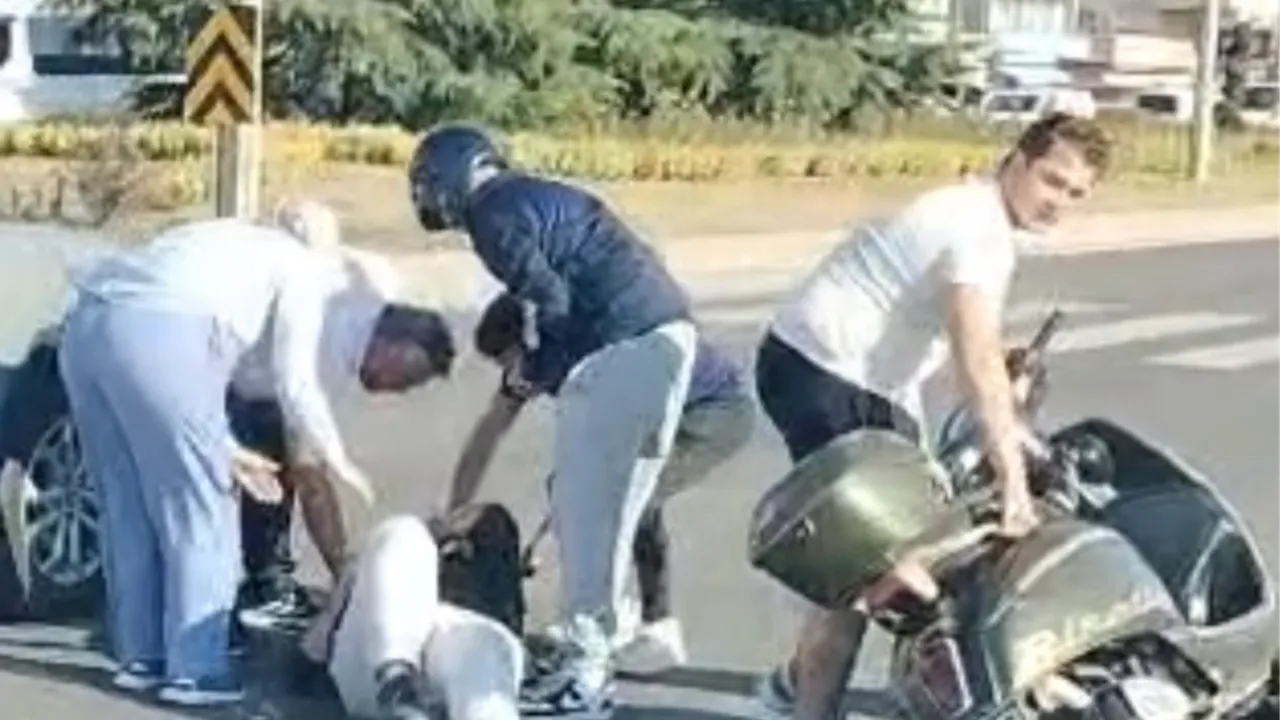 Görüntülerde, motosiklet sürücüsünün aniden yere düştüğü ve çevredeki diğer araçların hızlı bir şekilde yavaşlayarak durduğu görülürken, diğer sürücülerin dikkati sayesinde zincirleme bir kaza önlendi.