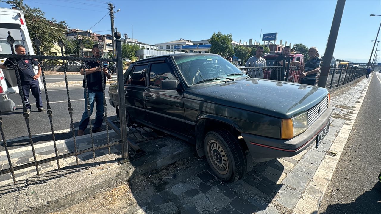 Savrulan otomobil, refüjdeki demir korkuluklara çarptı.