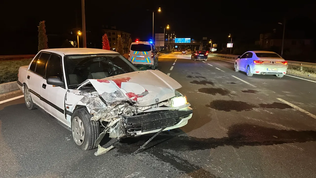 Düzce’nin D-100 Karayolu Kervan mevkisinde meydana gelen trafik kazasında 1 kişi yaralandı.Sefer DEMİR / DÜZCE (İGFA) - Alınan bilgilere göre, sürücüsünün kimliği henüz öğrenilemeyen 34 HFZ 403 plakalı otomobil, kontrolden çıkarak bariyerlere çarptı. Çarpmanın şiddetiyle otomobil yolun ortasına savruldu.