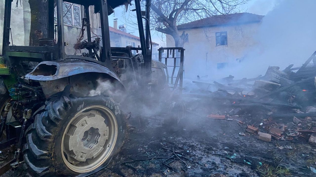 Yaklaşık 1 saat süren çalışma sonucunda söndürülen yangında ev, ahır ve traktör kullanılamaz hale geldi.