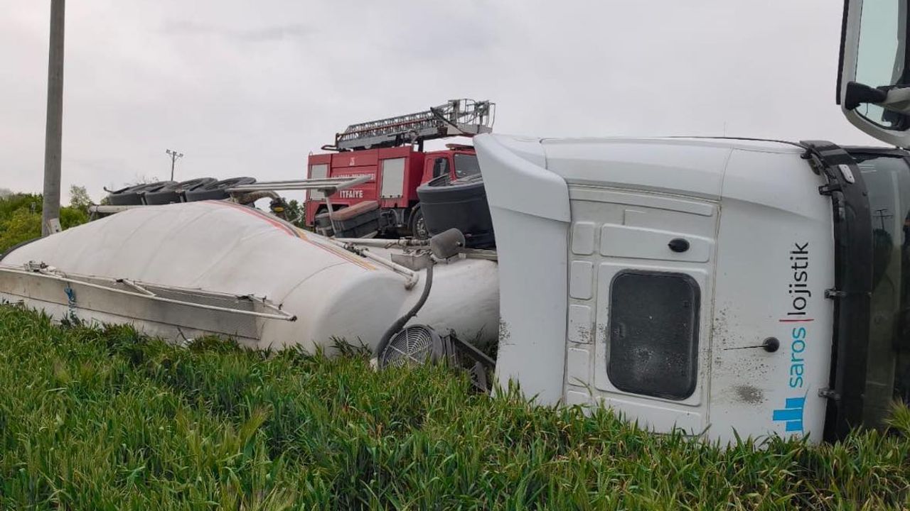 A.E. idaresindeki 22 ACH 045 plakalı beton mikseri, Sinanköy girişinde sürücüsünün direksiyon hakimiyetini kaybetmesi sonucu devrildi.
