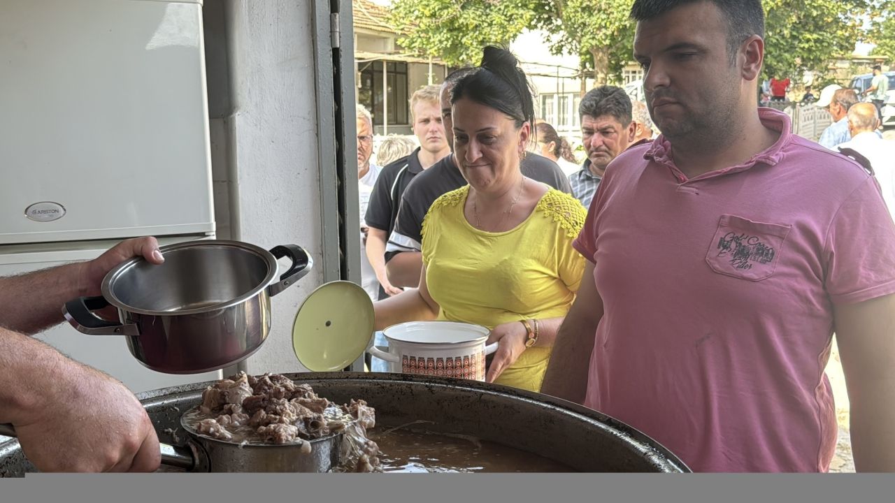 EDİRNE (AA) - Edirne'nin Süloğlu ilçesine bağlı Yağcılı köyünde, bir asırdır yaşatılan gelenekle pişirilen kurban etleri köy meydanında dağıtılıyor.