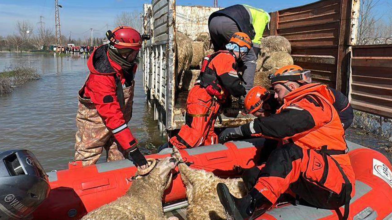 Edirne'de Meriç Nehri'nin bazı bölümlerinin taşması sonucu Bosnaköy ve çevresindeki tarım alanları, su altında kaldı. Bu bölgelerdeki çiftlik ve bağ evlerinde mahsur kalan çiftlik hayvanları ile diğer hayvanların kurtarılması için AFAD ile Edirne Mahalle Afet Gönüllüleri (MAG-EME) ekipleri, çalışma başlattı. Botlarla bölgeye giden ekipler, hayvanları kurtarıp, güvenli bölgelere taşıdı. Bu arada 'kırmızı alarm' uyarısı verilen Meriç Nehri'nin debisinde yükselişi devam ediyor. Bugün saat 10.00'da yapılan ölçümde 1439 olan debi, saat 12.00'de 1450 metreküp/saniyeye yükseldi. Tunca Nehri'nin 175 metreküp/saniye olan debisi ise 171 metreküp/saniyeye geriledi. (DHA)
