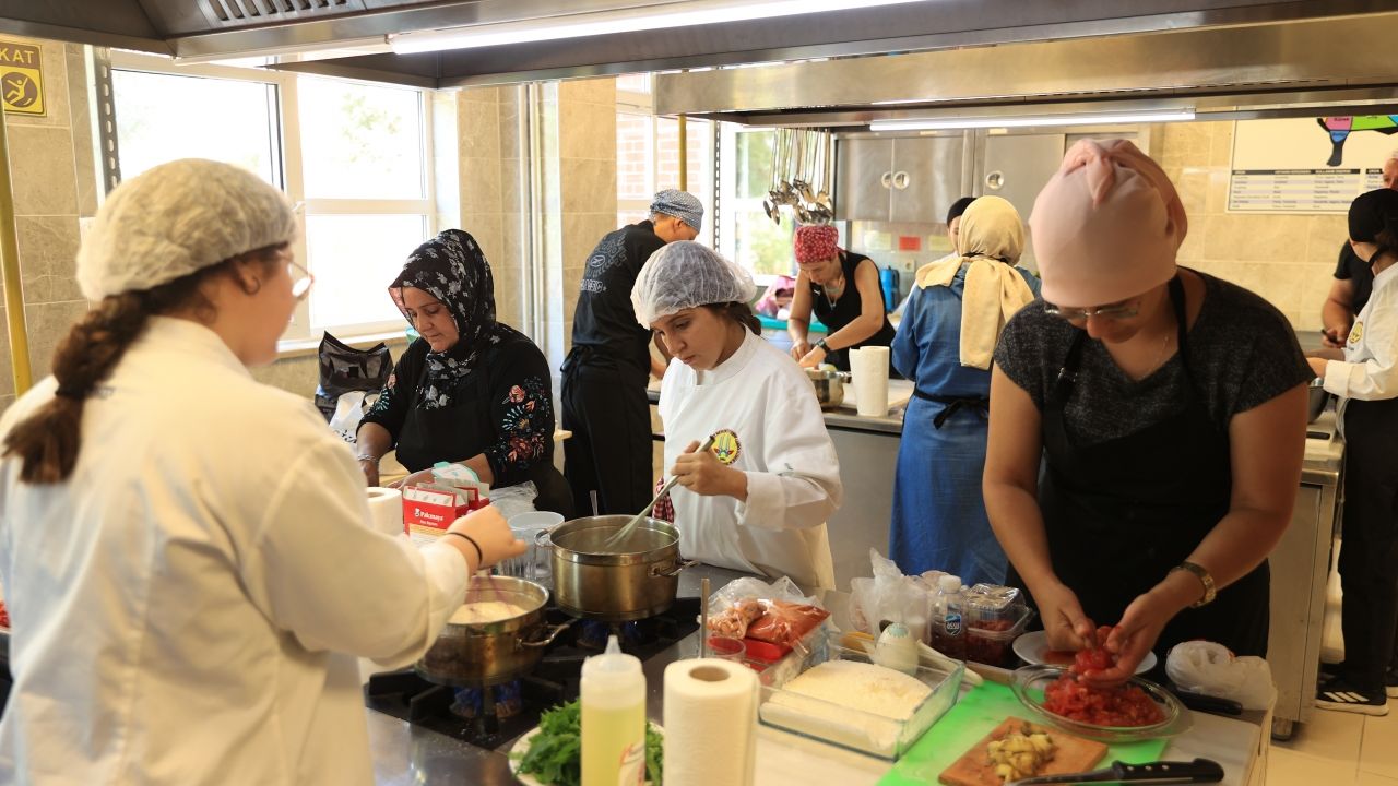 Aile ve Sosyal Hizmetler ile Milli Eğitim müdürlüklerinin işbirliğiyle düzenlenen yarışmada aileler, Dr. Sadık Ahmet Turizm Mesleki ve Teknik Anadolu Lisesi Yiyecek İçecek Hizmetleri Alanı mutfağında çeşitli yemekler hazırladı.