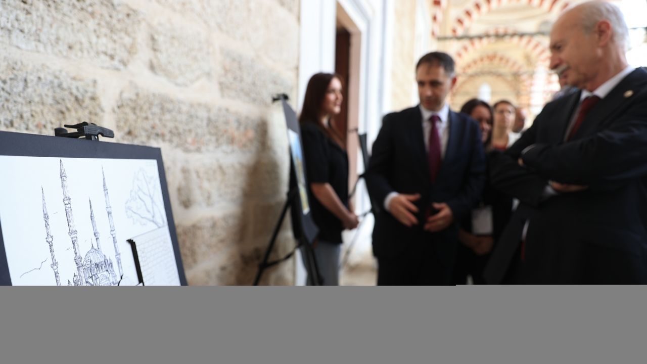 EDİRNE (AA) - Edirne'de Vakıflar Haftası dolayısıyla 2. Bayezid Külliyesi içinde yer alan cami avlusunda "Görünenin Ardındakiler" adlı eskiz sergisi törenle açıldı.