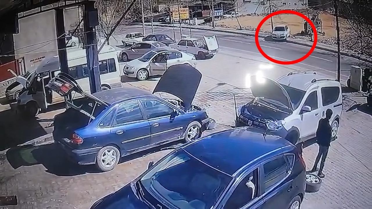 Olay, dün Mazıdağı ilçe merkezindeki oto tamirci dükkanının önünde meydana geldi. Tamir için getirilen otomobil, dükkanın önüne park edildi. İddiaya göre, sürücüsünün el frenini çekmediği otomobil, bir süre sonra hareket edip, geri gitmeye başladı. Kara yoluna gelen otomobil, karşı kaldırıma çıktı. O anlar, iş yerinin güvenlik kameralarına yansıdı. (DHA)