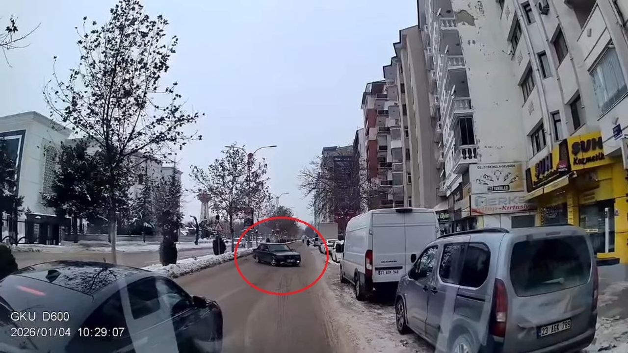 Elazığ'da Valilik önünde bulunan tek şeritli yolda kontrolsüz şekilde drift atan sürücü direksiyon hakimiyetini kaybetti. Kayan otomobil bir süre sonra durdu. Arkasında seyreden sürücüleri tehlikeye atan hareketin ardından tekrar kontrolü sağlayan sürücü, daha sonra yoluna devam etti. Sürücünün trafiği tehlikeye düşürdüğü o anlar bir başka sürücünün araç kamerası tarafından kaydedildi. (DHA)