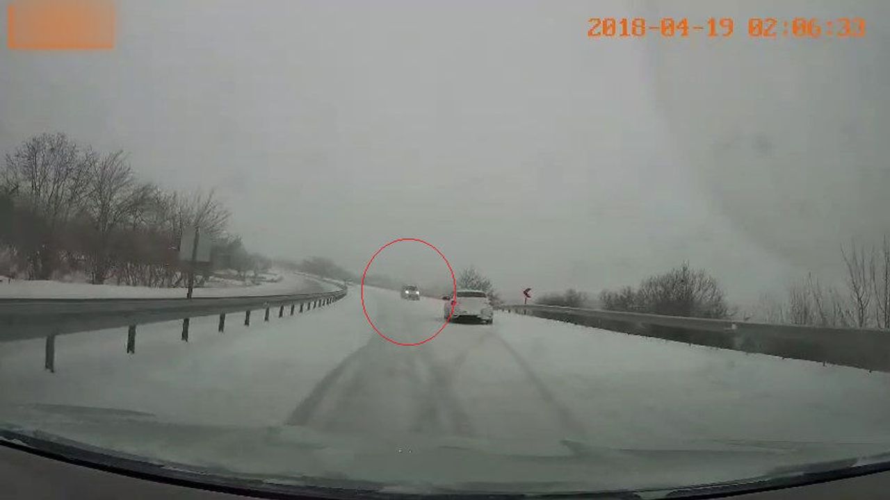 Olay, öğleden sonra Şahsuvar mevkisinde meydana geldi. Sürücüsünün ismi öğrenilmeyen hafif ticari araç, kar yağışı nedeniyle kayganlaşan yolda kontrolden çıkarak yol ortasına savruldu. Kontrolden çıkarak savrulan araç, şans eseri yoldan geçen diğer araçlarla çarpışmayarak, bariyerlere sürtüp, durdu. Savrulma anları, arkadan gelen başka bir aracın yol kamerasına yansıdı. Kamera kaydında, arkadan gelen sürücülerin ani fren ve manevra yaparak çarpışmayı son anda önlediği görüldü. (DHA)