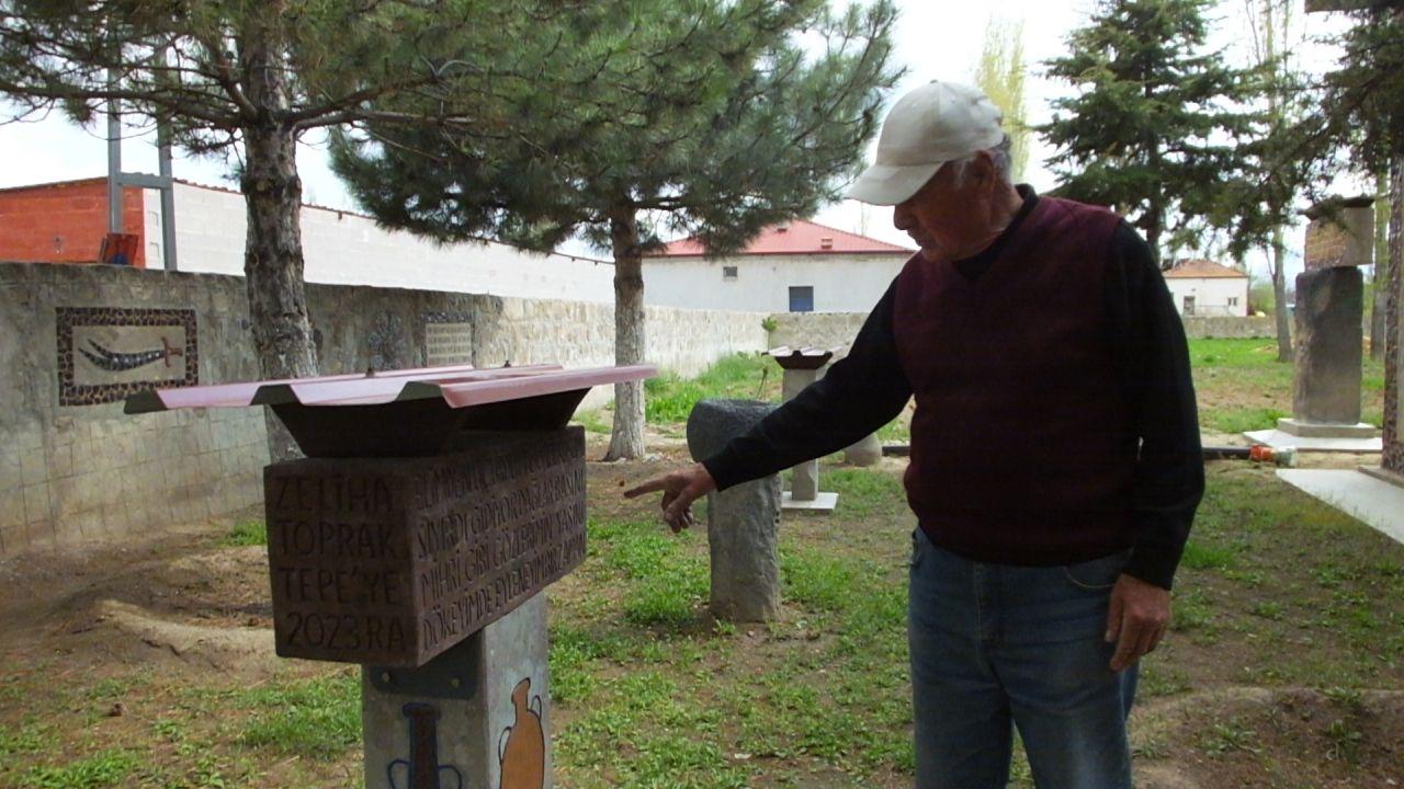 Vefatından önce eşi ile bahçede keyifli vakit geçirdiğini, o günleri özlediğini dile getiren Topraktepe, "Eşimle burada çay içip vakit geçirirdik. Eşime vefa örneği olarak yazdığım şiiri taşa işledim. Eşim bana 4 evlat verdi. Vefatına aşırı derecede üzüldüm. Halen de kendimi toparlayamadım. Eşim bana elinden geldiğince yardımcı olup, psikolojik destek veriyordu." ifadelerini kullandı.