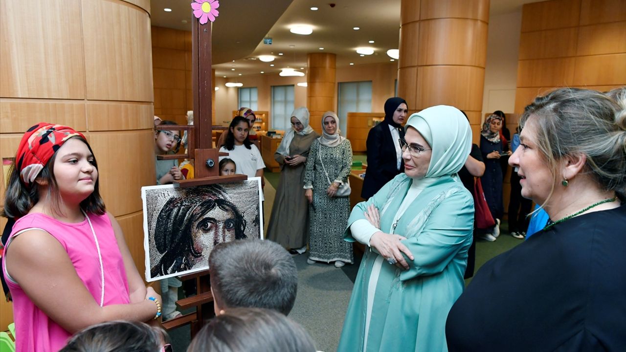 Liderlerin eşleri, Cumhurbaşkanlığı Külliyesi'nde yer alan Devlet Konukevi'ndeki görüşmelerinin ardından Cumhurbaşkanlığı Millet Kütüphanesi'ne geçti.