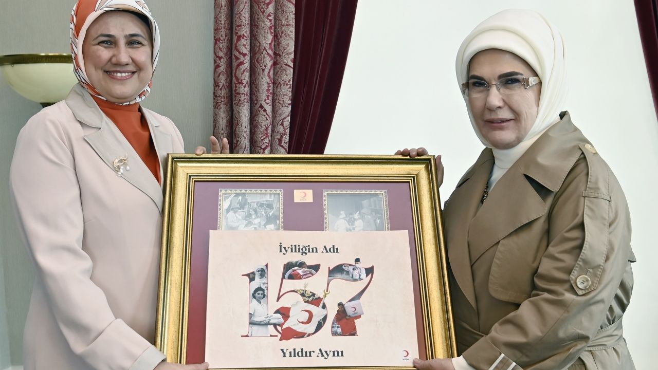 Görüşmede, Türk Kızılay'ın ulusal ve uluslararası çalışmaları hakkında bilgi veren Yılmaz ise Türk Kızılay'a desteği için teşekkür ettiği Emine Erdoğan'a, günün anısına üzerinde "Hilal-i Ahmer Çiçek Günü"nü anlatan eski zamanlara ait fotoğrafların yer aldığı tablo hediye etti.