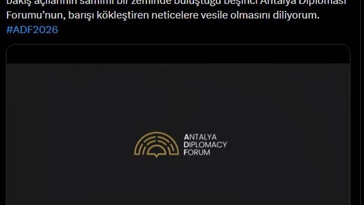 Emine Erdoğan, sanal medya hesabından yaptığı paylaşımda, 'Diplomasinin birleştirici gücünü öne çıkaran, farklı kültürlerin, dillerin ve bakış açılarının samimi bir zeminde buluştuğu beşinci Antalya Diplomasi Forumu'nun, barışı kökleştiren neticelere vesile olmasını diliyorum' ifadelerine yer verdi. (DHA)