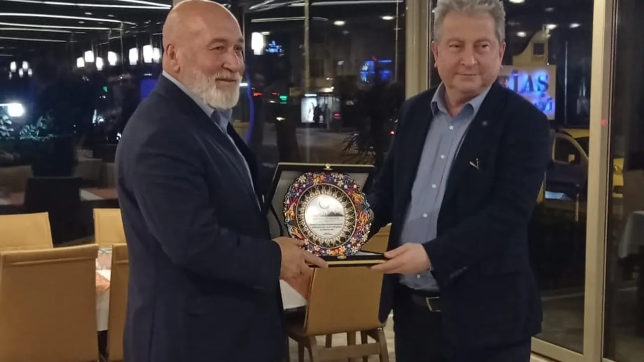 Emekli Memur-Sen İstanbul İl Başkanı Arslan Özüduruk, Enerji Bir-Sen Genel Başkanı Hacıbayram Tombul’un onuruna düzenlenen iftarda, İstanbul’daki başarılı sendika çalışmaları için plaket takdim etti.Ercan KUTLU / İSTANBUL (İGFA) - İstanbul’da gerçekleştirilen anlamlı bir iftar programında, Enerji Bir-Sen Genel Başkanı Sayın Hacıbayram Tombul’a yönelik güzel bir buluşma gerçekleşti. Programa, Emekli Memur-Sen İstanbul İl Başkanı Arslan Özüduruk da katılarak, sendika çalışmaları kapsamında yapılan başarılı faaliyetlerden dolayı plaket takdiminde bulundu.