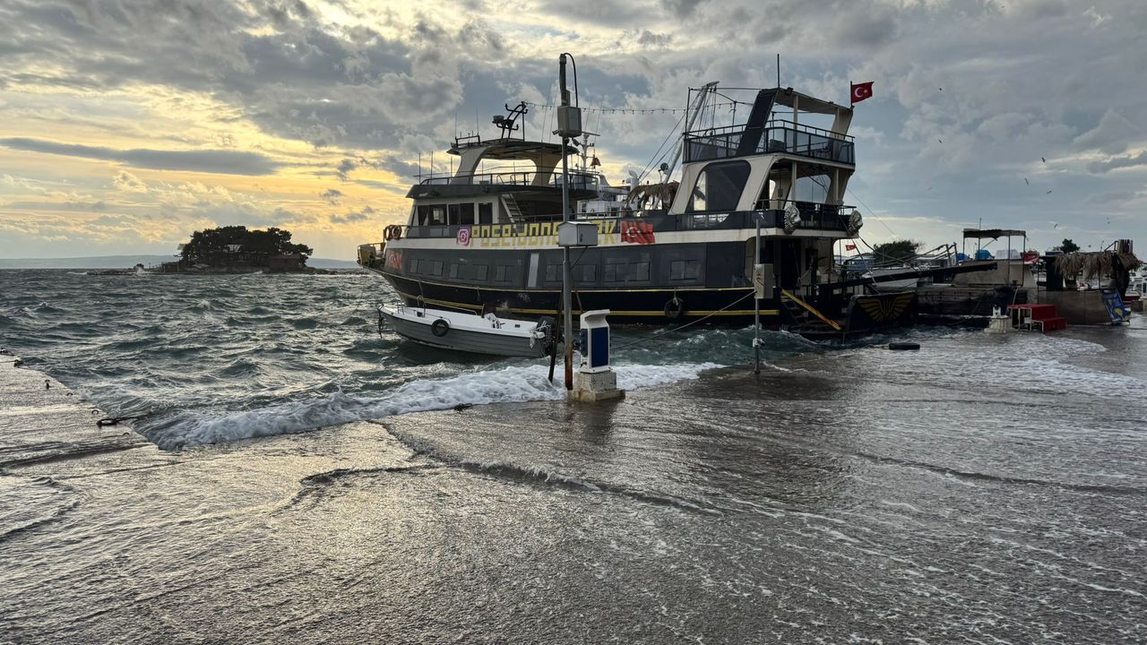 Basri Tuncay ERTAN-Zeki KARADENİZ/ERDEK, (Balıkesir), (DHA)- MARMARA Bölgesi'ni etkisi altına alan lodos, Balıkesir'in Erdek ilçesinde de hayatı olumsuz etkiledi. Saatteki hızı 70 kilometreye ulaşan lodosta yüksek dalgalar nedeniyle denizle kara birleşti.