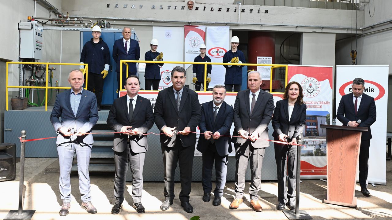Erdemir Genel Müdürü Şaban Yazıcı ise yaptığı konuşmada 'Erdemir olarak mesleki ve teknik eğitimin güçlenmesini, sanayimizin geleceği açısından stratejik bir yatırım olarak görüyoruz. Öğrencilerimizin modern üretim teknolojileriyle tanışmasını sağlayacak bu katkının hem bölgenin kalkınmasına hem de nitelikli iş gücünün yetişmesine önemli bir ivme kazandıracağına inanıyoruz. Eğitim kurumlarımızla iş birliğimizi ve bölgemizde eğitime olan katkılarımızı sürdürmeye devam edeceğiz' dedi.
