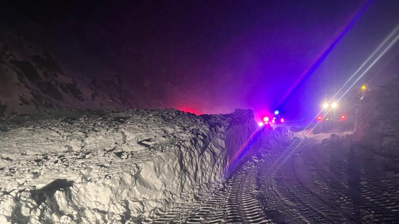 Karayolları Müdürlüğü ekipleri, çığ düşen Erzincan-Sivas kara yolunda temizlik çalışmasını sürdürüyor. Uzun araç kuyruğu oluşan yolda iş makinelerinin çalışması sonucu tek şeritten geçişlere izin verildi. (DHA)
