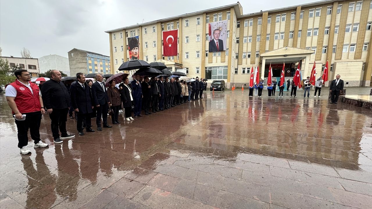 Ağrı'da Abide Meydanı'nda bulunan Atatürk Anıtı'na çelenk sunuldu, saygı duruşunun ardından İstiklal Marşı okundu.