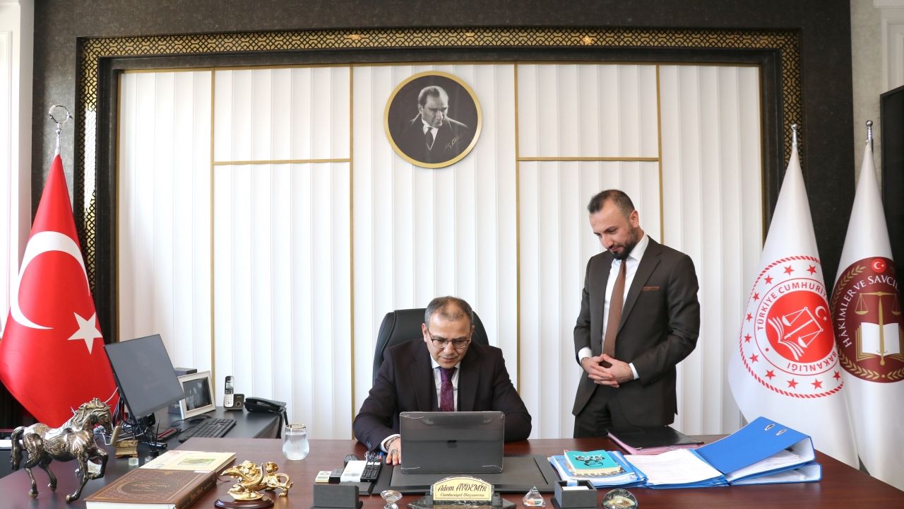 Başsavcı Aydemir, AA muhabirleri ile foto muhabirlerinin yurt içi ve dışında çektiği, Roketsan, Lifebox ve Sony'nin katkılarıyla hazırlanan "Yılın Kareleri" oylamasında yer alan fotoğraflar hakkında AA Erzurum Bölge Müdürü Yunus Okur'dan bilgi aldı.