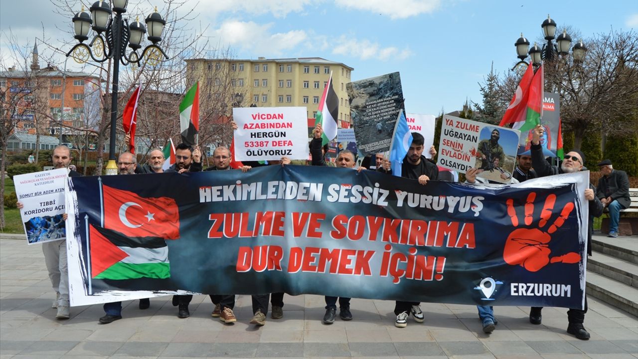 ERZURUM (AA) - Erzurum'da hekim ve sağlıkçılar, İsrail'in Gazze'ye yönelik saldırılarını protesto etmek ve zulme dikkati çekmek amacıyla 75. haftada da yürüyüşlerini sürdürdü.
