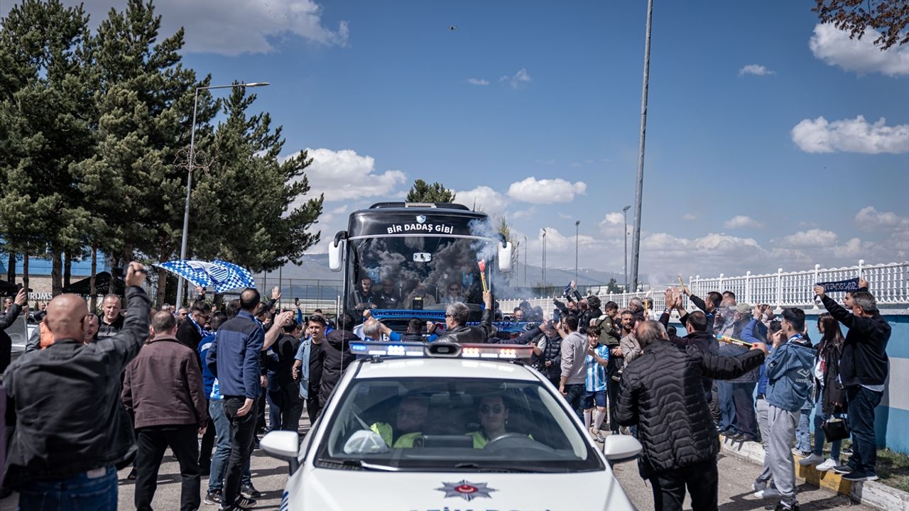 ERZURUM (AA) - Trendyol 1. Lig'in 37. haftasında Central Hospital Ümraniyespor ile bugün karşılaşacak Erzurumspor FK, maç öncesinde taraftarları tarafından meşaleli gösteriyle stada uğurlandı.