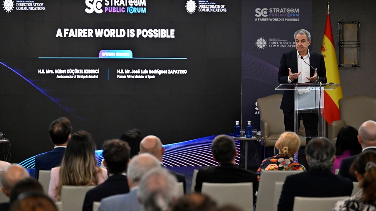 Zapatero, Türkiye Cumhuriyeti Cumhurbaşkanlığı İletişim Başkanlığı tarafından İspanya'nın başkenti Madrid'de "Daha Adil Bir Dünya Mümkün" başlıklı panelin açılış konuşmasını yaptı.