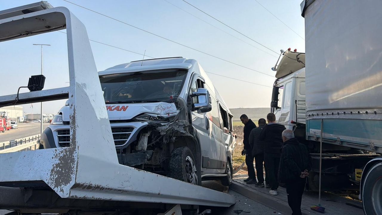 Odunpazarı ilçesine bağlı 75. Yıl OSB Mahallesi Firuz Kanatlı Bulvarı'nda saat 09.30 sıralarında meydana gelen kazada; F.K. idaresindeki 06 EYH 931 çekici plakalı TIR, aynı yöne giden işçi taşıyan 2 servis minibüsü ile 2 otomobile arkadan çarptı. Kazada servis minibüslerindeki 12 işçi yaralandı. Çevredekilerin ihbarıyla olay yerine sağlık ve polis ekipleri sevk edildi. Yaralılar, ambulanslarla kentteki hastanelere kaldırıldı. Yaralıların durumlarının iyi olduğu öğrenilirken, kazayla ilgili soruşturma başlatıldı. (DHA)