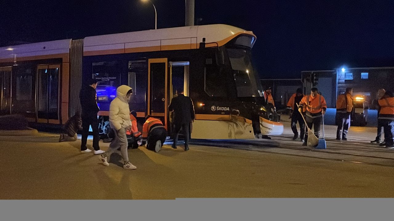 Kazada tramvayda hasar meydana gelirken hat üzerindeki işletim durdu.