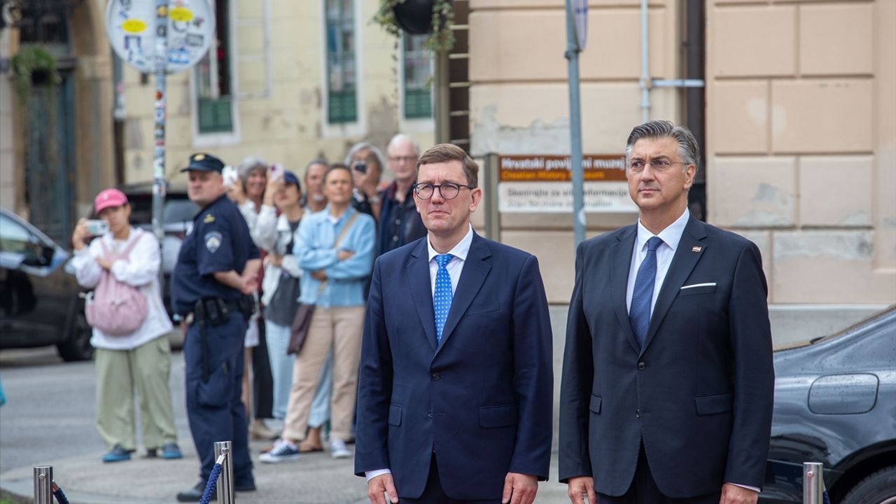 Michal, resmi ziyaret gerçekleştirdiği Hırvatistan'ın başkenti Zagreb'de mevkidaşı Andrej Plenkovic tarafından karşılandı.