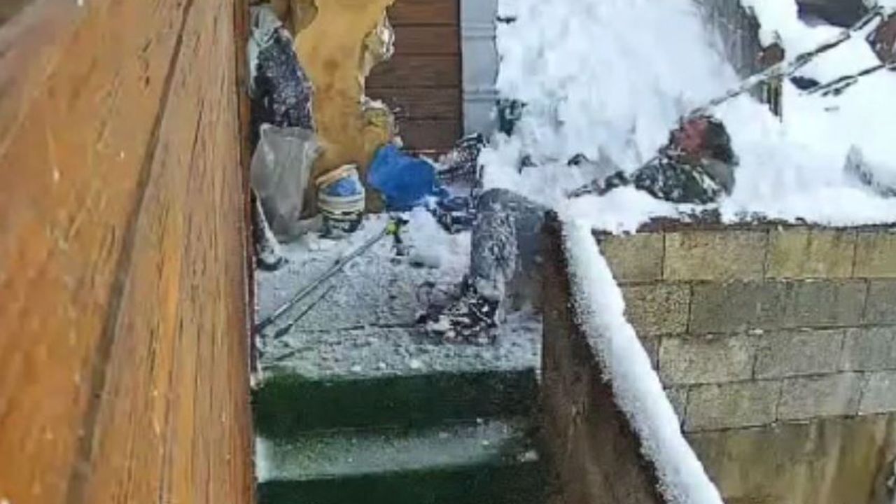 Cevahir TOPALOĞLU/ÇAMLIHEMŞİN (Rize), (DHA)- RİZE'nin Çamlıhemşin ilçesinde evinin çatısında biriken karı temizlerken dengesini kaybedip zemine düşen A.D., yaralandı. O anlar, güvenlik kameralarına yansıdı.