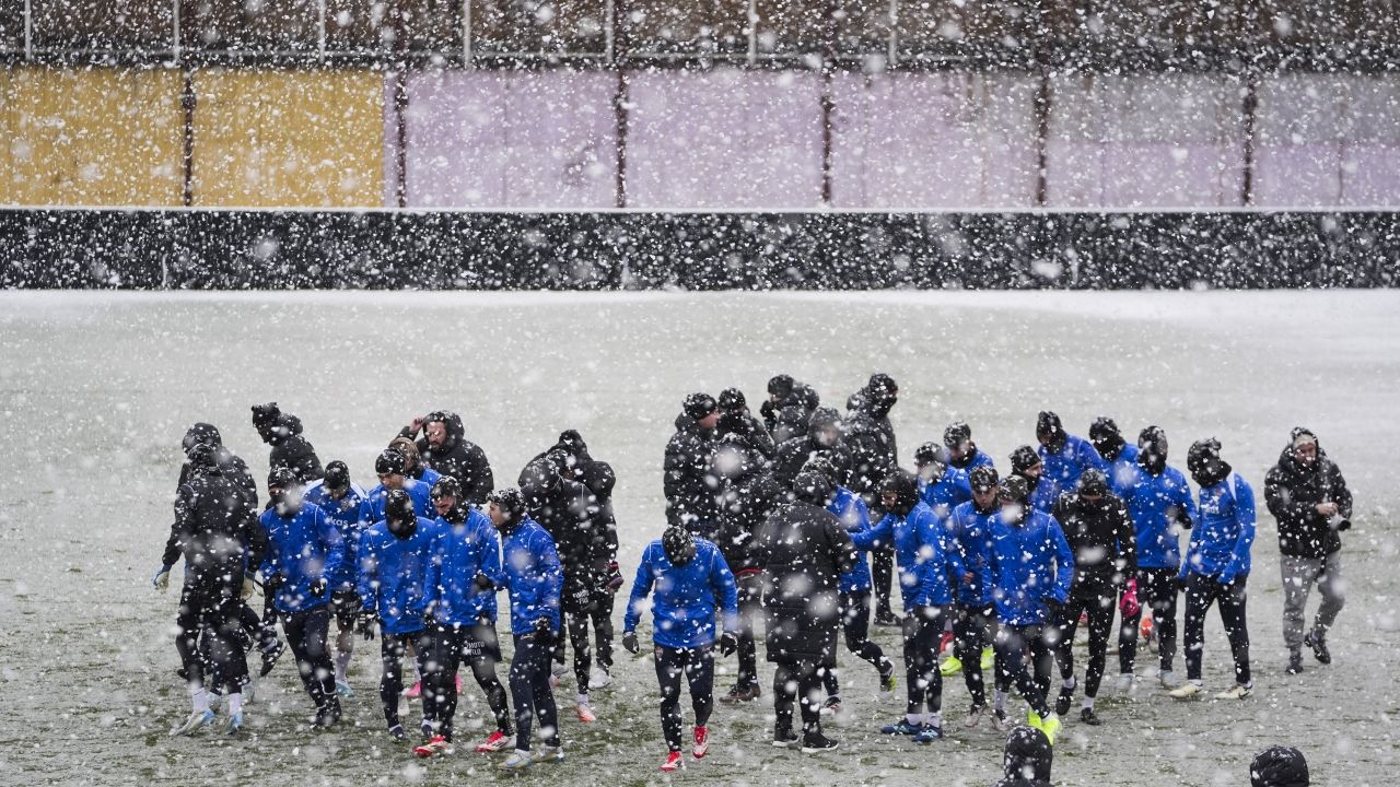 Eyüp Stadı'ndaki antrenman, teknik direktör Arda Turan yönetiminde yoğun kar yağışı altında yapıldı.