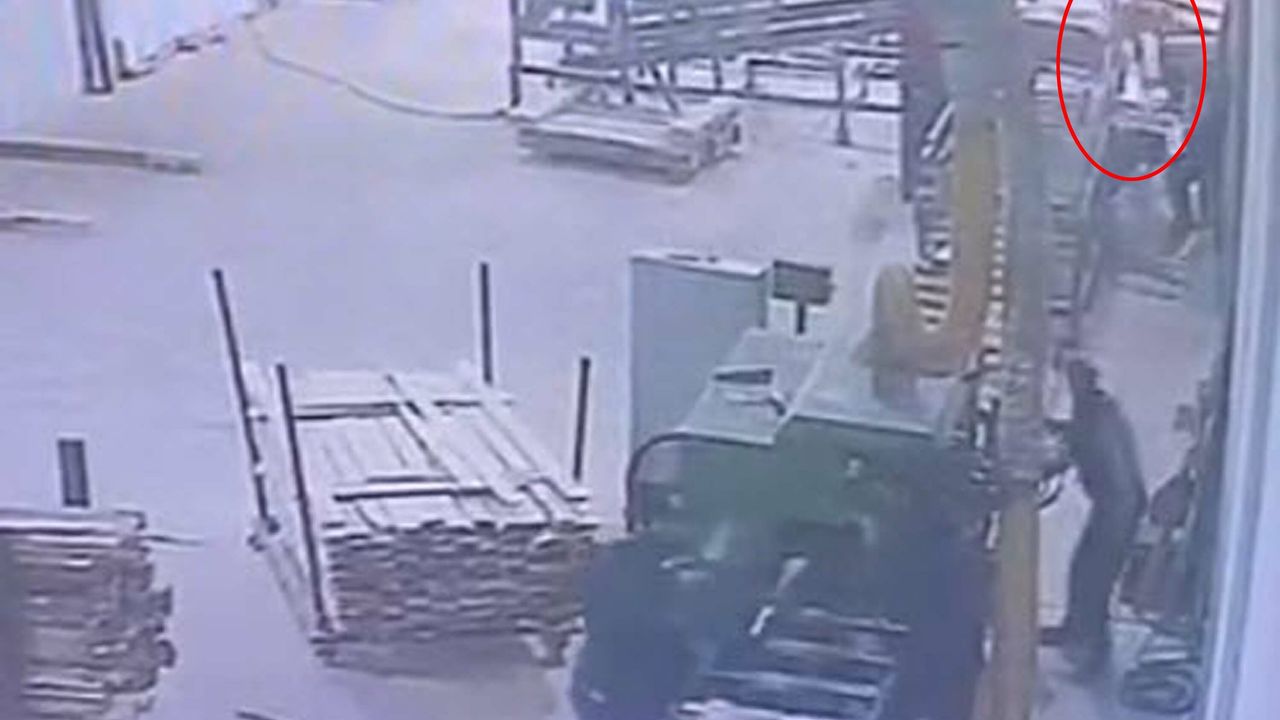 Bu arada kazanın görüntüleri ortaya çıktı. İş yerinin güvenlik kamerasına yansıyan görüntülerde, Altun'un, makineden fırlayan odun parçasının başına isabet etmesi sonucu yere yığıldığı görülüyor. (DHA)