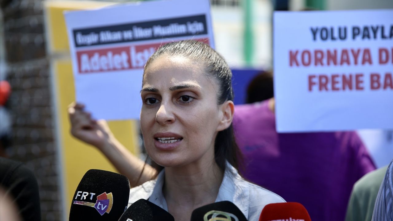 Duruşma öncesi bir grup bisikletli Beşkaza Meydanı'nda toplandı. Grup ellerinde "Bisikletime çarparsan ölürüm", "Yolu paylaş kornaya değil frene bas", "Özgür Alkan ve İlker Muallim için adalet istiyoruz", "Sağ şerit yasal hakkımız" yazılı dövizler taşıdı.