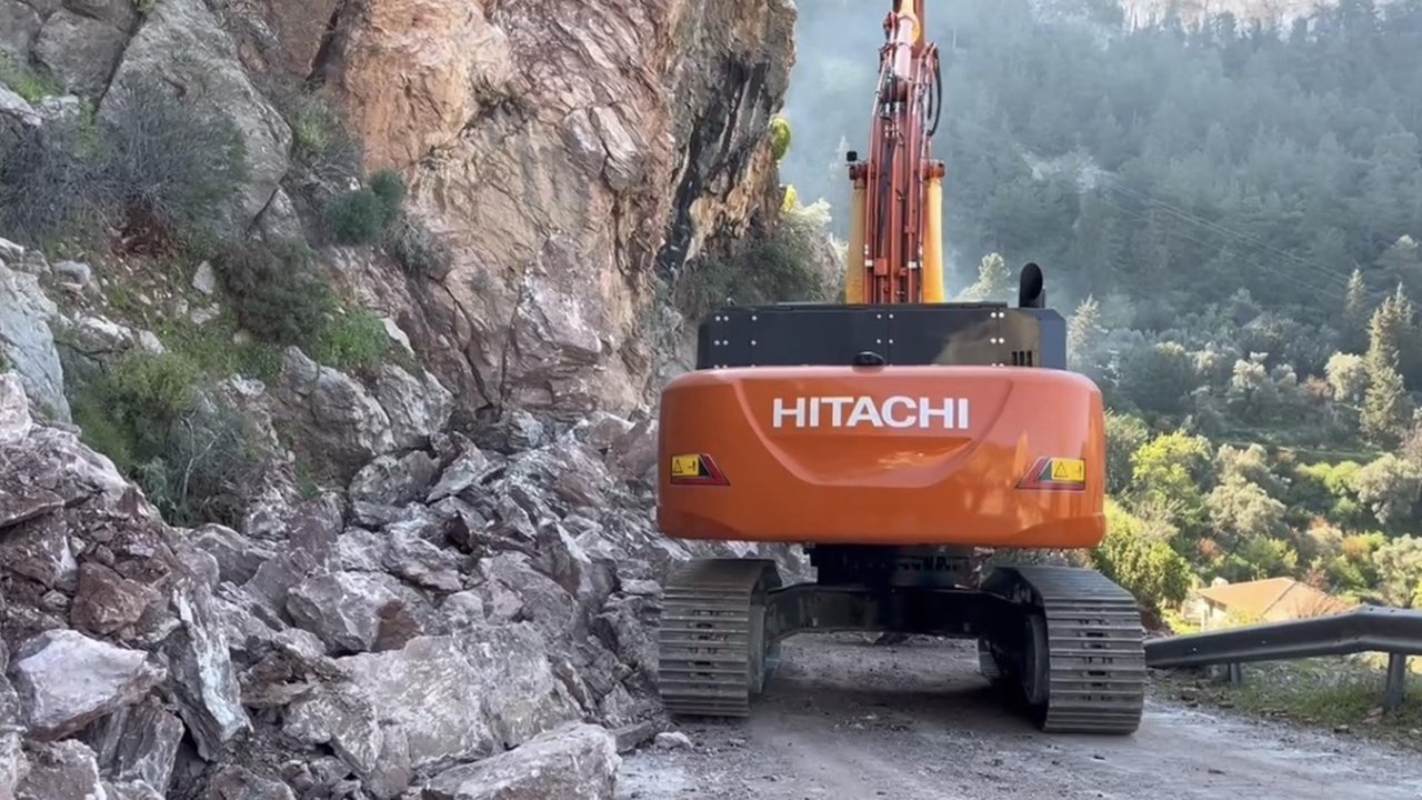 Muğla'nın Fethiye ilçesinde, yamaçtan kopan kaya parçaları nedeniyle kapanan Ölüdeniz-Faralya kara yolunu tekrar trafiğe açılması için iş makineleriyle çalışma başlatıldı.