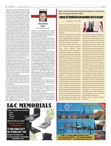 Avrupa Gazete - 20.07.2018 Manşeti
