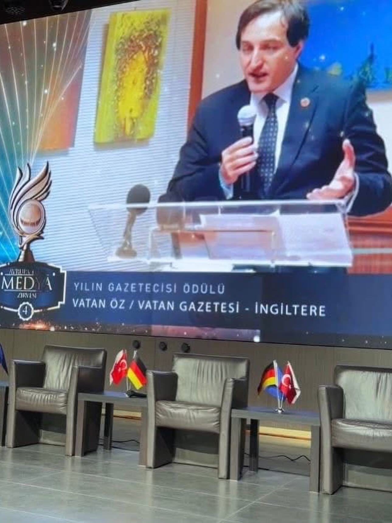 GELSENKIRCHEN – Almanya /ÖZEL-Avrupa Türk Medya Zirvesi 2026 kapsamında verilen “Avrupa’da Yılın Gazetecisi” ödülü, gazetecilik alanındaki uzun soluklu çalışmaları, diaspora medyasına katkıları ve Avrupa’daki Türk toplumuna yönelik yayıncılık faaliyetleri dolayısıyla Vatan Öz’e takdim edildi. Bu ödül, yalnızca bireysel bir başarı değil; Avrupa’da yaşayan Türkler adına duyulan ortak bir gurur, çeyrek asrı aşan bir medya mücadelesinin takdiri olarak değerlendirildi. Özellikle İngiltere Türk toplumu adına anlamlı bir başarı olarak kayda geçen ödül, Avrupa diasporasında sürdürülen bağımsız gazeteciliğin önemini bir kez daha ortaya koydu.