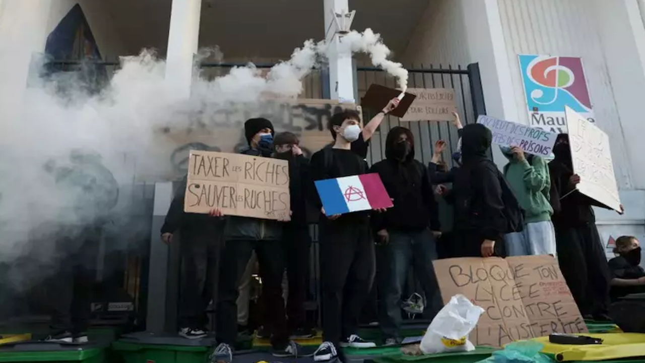 Lyon'da Place Jean Mace Meydanı'nda toplanan göstericiler - Pankart ve bayraklarla yürüyen göstericiler . Fransa'nın Lyon kentinde yüzlerce kişi, Place Jean Mace Meydanı'nda bütçe kesintilerini protesto etmek için bir araya geldi. Ülke genelinde 240'tan fazla gösteri düzenleyen sendikalar, vergi adaleti talebinde bulundu. Gazze destekçisi gruplar da gösteride yer aldı.
