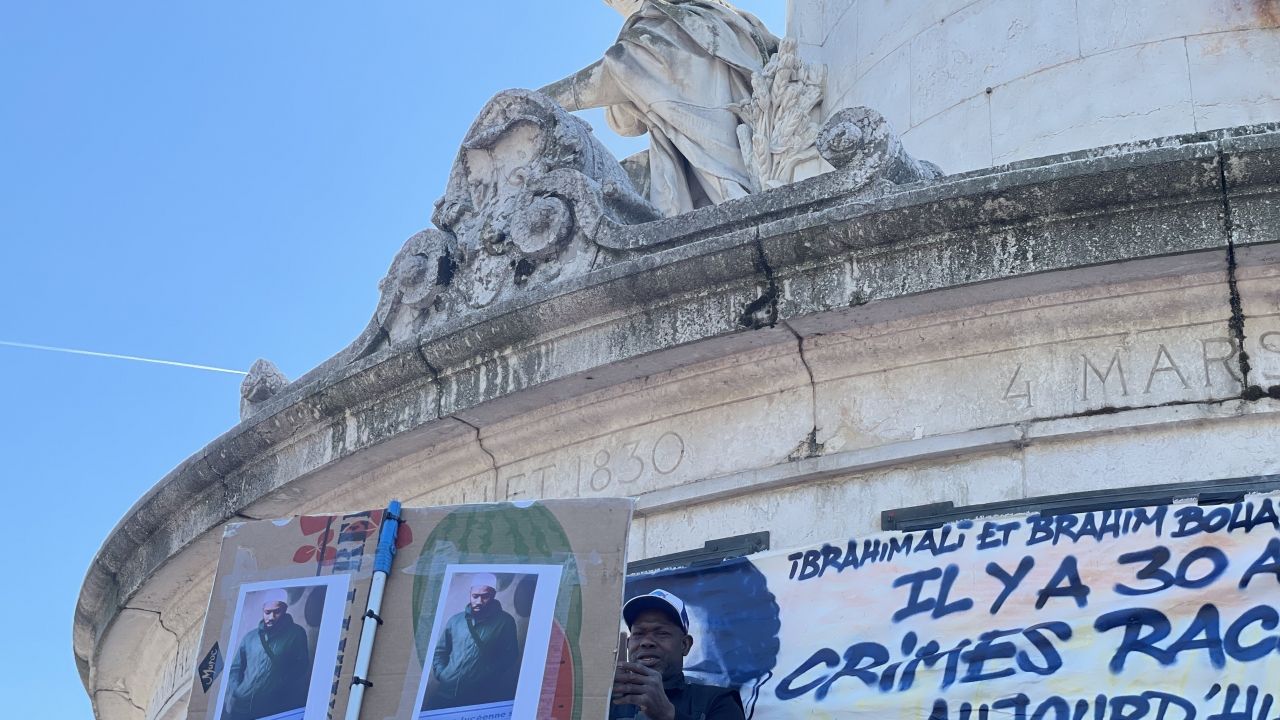 Katılımcılar, ellerinde "Müslümanlara yönelik nefrete hayır", "Nefret mağduru Aboubakar Cisse" ve "Aboubakar Cisse için adalet" yazılı pankart taşıdı.