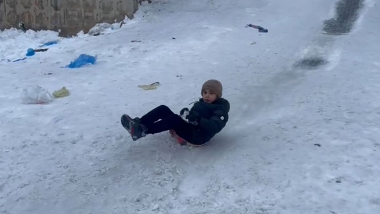 Kentte perşembe günü öğle saatlerinde başlayan kar yağışının ardından çocuklar, mahalledeki eğimli arazide poşet, tepsi ve leğen ile kaydı. Tatili fırsat bilen çocuklar, soğuk havaya aldırış etmeden karın keyfini çıkarırken, o anlar kameraya yansıdı.